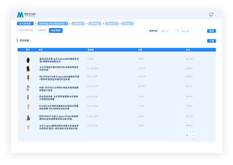 魔镜洞察可展示各级子类目细分赛道,支持按照品牌、商品、店铺等不同维度洞察海外市场