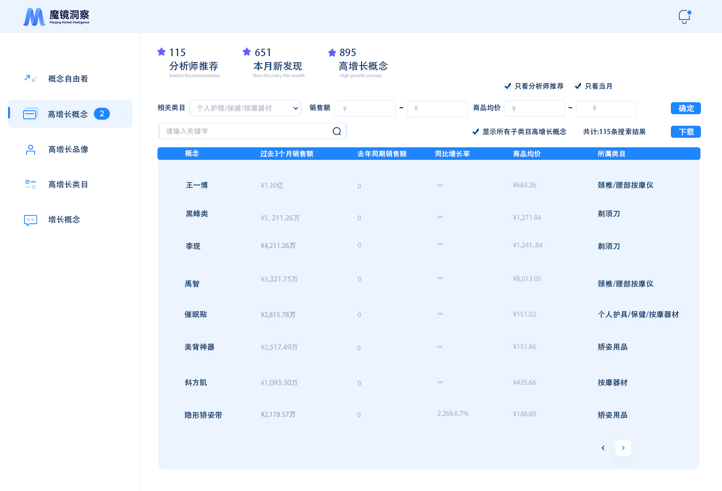 洞察高增长品牌,挖掘高增长行业,聚焦高增长概念,每月海量高增长机会点发现